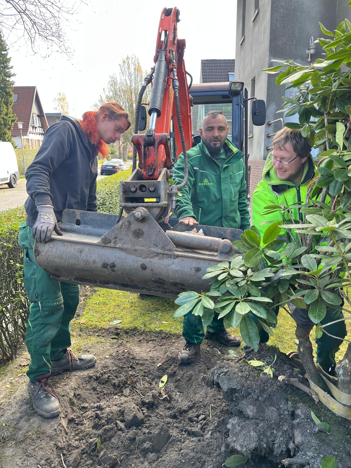 Auch große und wertvolle Pflanzen lassen sich mit der richtigen Vorbereitung und Erfahrung sicher an einen neuen Standort versetzen. So geschehen bei einem prächtigen Rhododendron, der mit Unterstützung von Michaela Müller-Kleefeld und dem Team von Müller Grün & Bau erfolgreich umgezogen ist. Mit fachgerechtem Aushub, sorgfältigem Transport und optimaler Pflanzung wurde sichergestellt, dass die Pflanze ihren neuen Platz gut annimmt und weiterhin gesund gedeiht. Dieses Beispiel zeigt, wie Erfahrung, Wissen und Fingerspitzengefühl im Gartenbau Hand in Hand gehen – für den Erhalt und die nachhaltige Entwicklung wertvoller Pflanzenbestände.